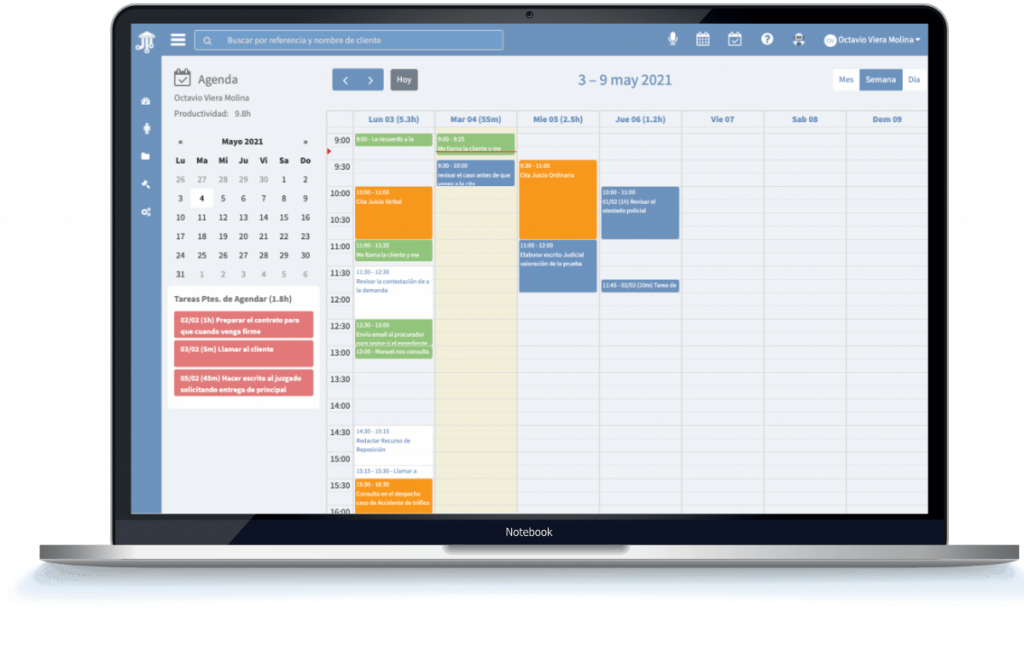 Para remediar esto, Juiciator te ayuda a ORGANIZAR tu tiempo para que seas más productivo y te controlamos la RENTABILIDAD de tu servicio jurídico