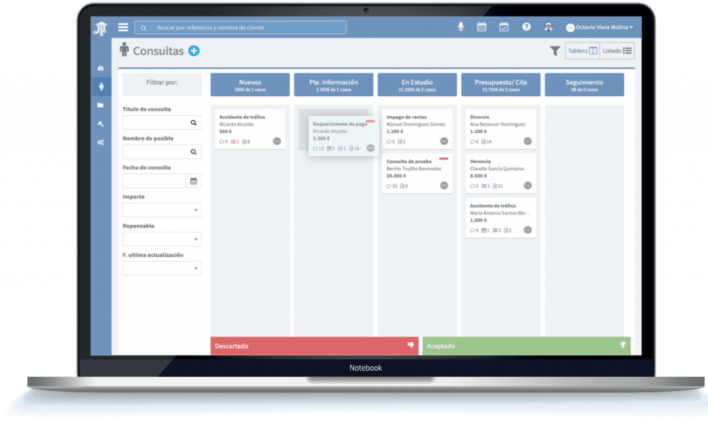 Juiciator te ayuda a ordenar, clasificar y priorizar tus consultas, organizándolas para que puedas convertir las más interesantes en clientes, te ayudamos a rentabilizar tus consultas y hacer crecer tu despacho.